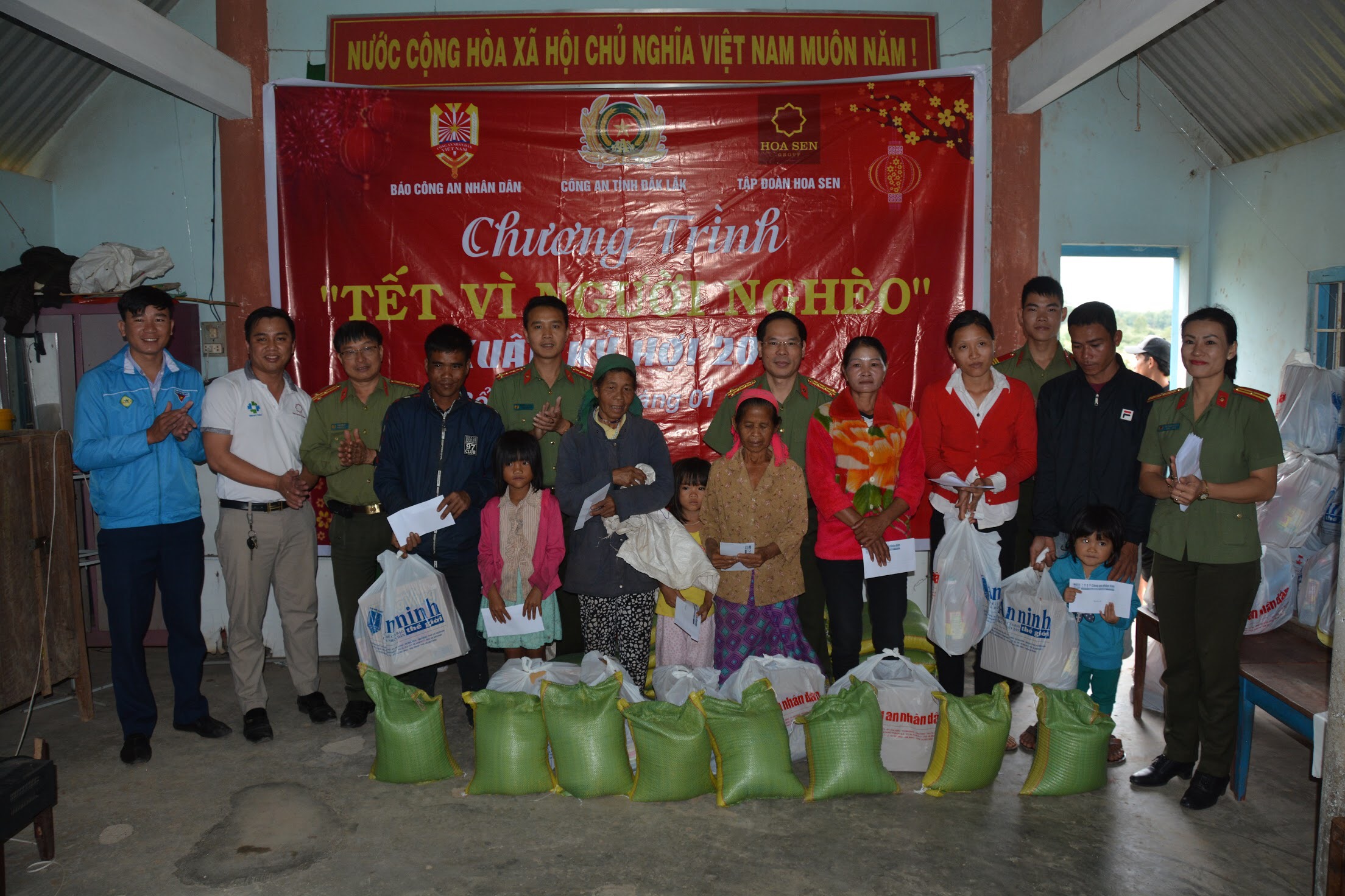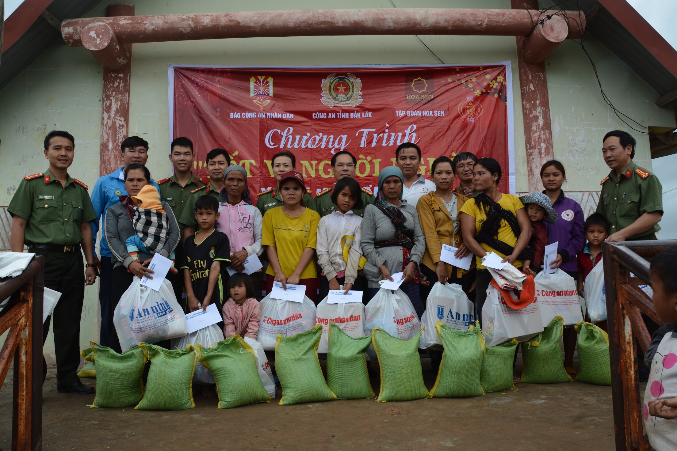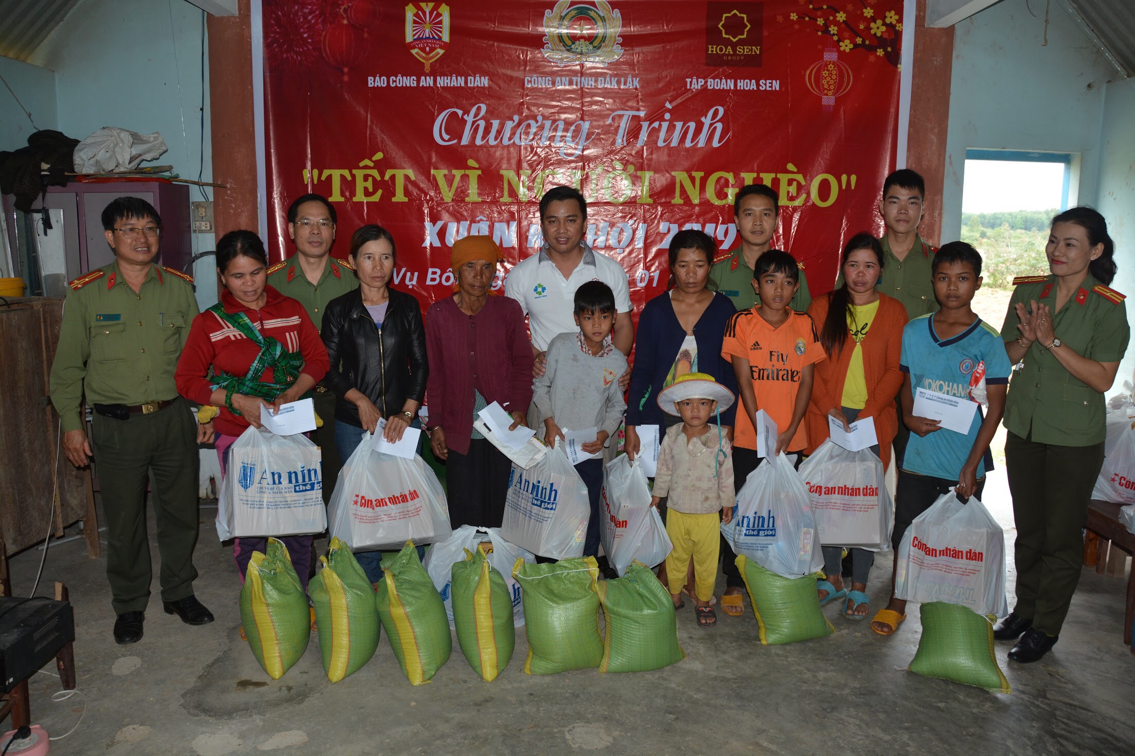 Nhân dịp Tết Nguyên đán Kỷ Hợi sắp đến, phòng Công tác Đảng - Công tác chính trị, Công an tỉnh Đắk Lắk phối hợp cùng Báo Công an nhân dân và nhà hảo tâm đã đến thăm, tặng quà Tết đồng bào nghèo ở buôn Krue, xã Vụ Bổn, huyện Krông Pắk, tỉnh Đắk Lắk.