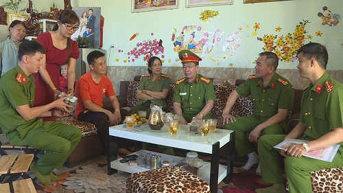 Đồng chí Đại tá Phạm Minh Thắng - Phó Giám đốc Công an tỉnh cùng đoàn công tác đến thăm hỏi đồng chí Thượng úy Hứa Mạnh Hùng bị thương khi đang thực hiện nhiệm vụ