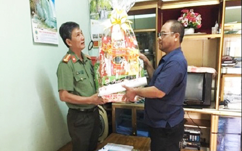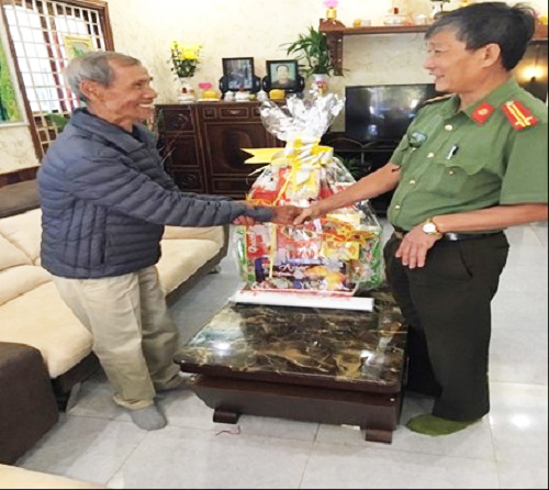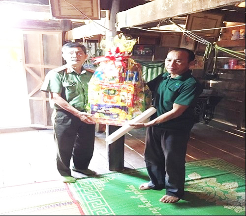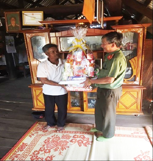 Đ/c Trung tá Nguyễn Đức Trí đại diện Phòng xây dựng phong trào bảo vệ ANTQ thăm, tặng quà và chúc Tết gia đình người có uy tín trong tôn giáo, đồng bào dân tộc thiểu số