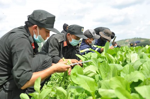 Công an huyện Ea Súp thu gom rau gửi về vùng dịch