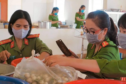 Công an huyện Ea H’leo sơ chế thực phẩm gửi lực lượng tuyến đầu