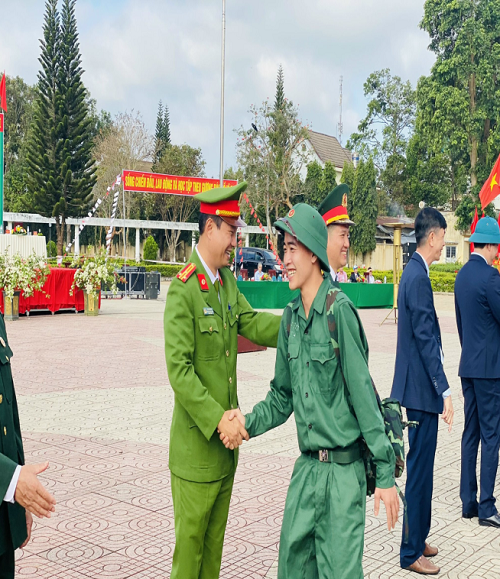 Đồng chí Thượng tá Lê Văn Tuấn - Trưởng Công an huyện Krông Ana đến dự lễ động viên các thanh niên lên đường nhập ngũ (02/2023)