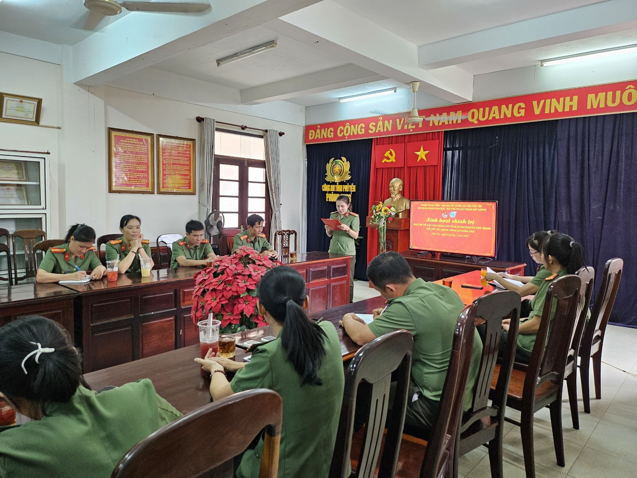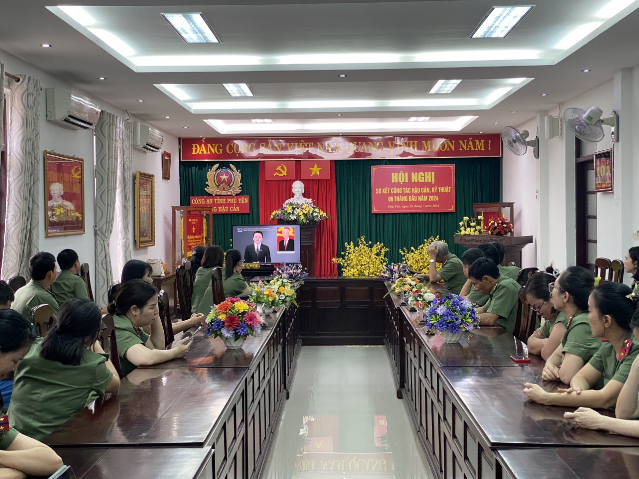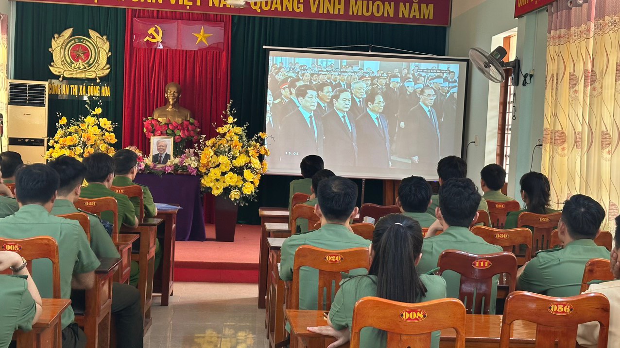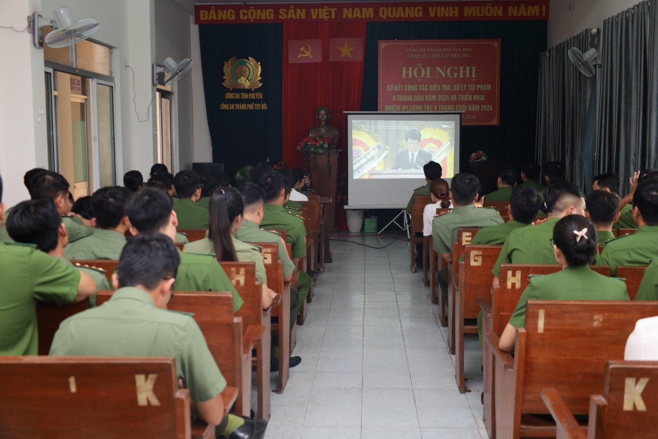 Trên cơ sở đó, trong ngày 26/7/2024, các chi đoàn, Hội cơ sở đã chủ động tổ chức và tham mưu cấp ủy, lãnh đạo các đơn vị, địa phương tổ chức các hoạt động sinh hoạt chính trị về học tập, làm theo các bài viết, các tác phẩm, các lời dạy của đồng chí Tổng Bí thư Nguyễn Phú Trọng đối với lực lượng Công an nhân dân, tổ chức xem phim tư liệu về cuộc đời, sự nghiệp cách mạng của đồng chí Tổng Bí thư trong đoàn viên, hội viên và CBCS. Từ đó, phát động trong đoàn viên, hội viên học tập, phấn đấu rèn luyện, trau dồi đạo đức cách mạng theo những lời dạy quý báu của đồng chí Tổng Bí thư đối với lực lượng Công an nhân dân: mỗi cán bộ, chiến sĩ Công an phải nỗ lực “Phụng sự Tổ quốc, phục vụ Nhân dân", "Còn Đảng thì còn mình", "Danh dự là điều thiêng liêng cao quý nhất”!