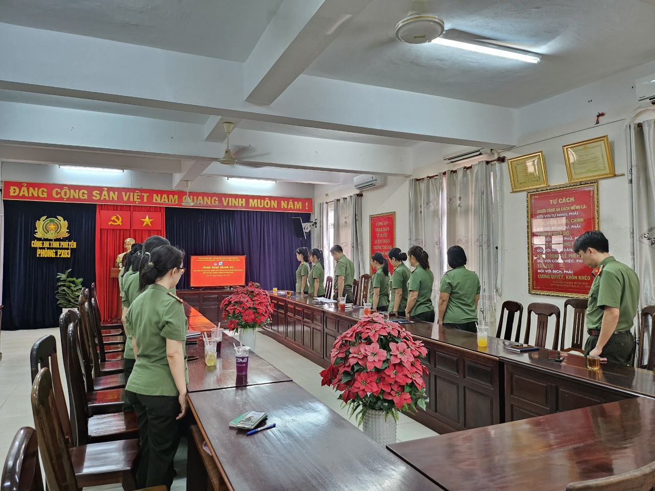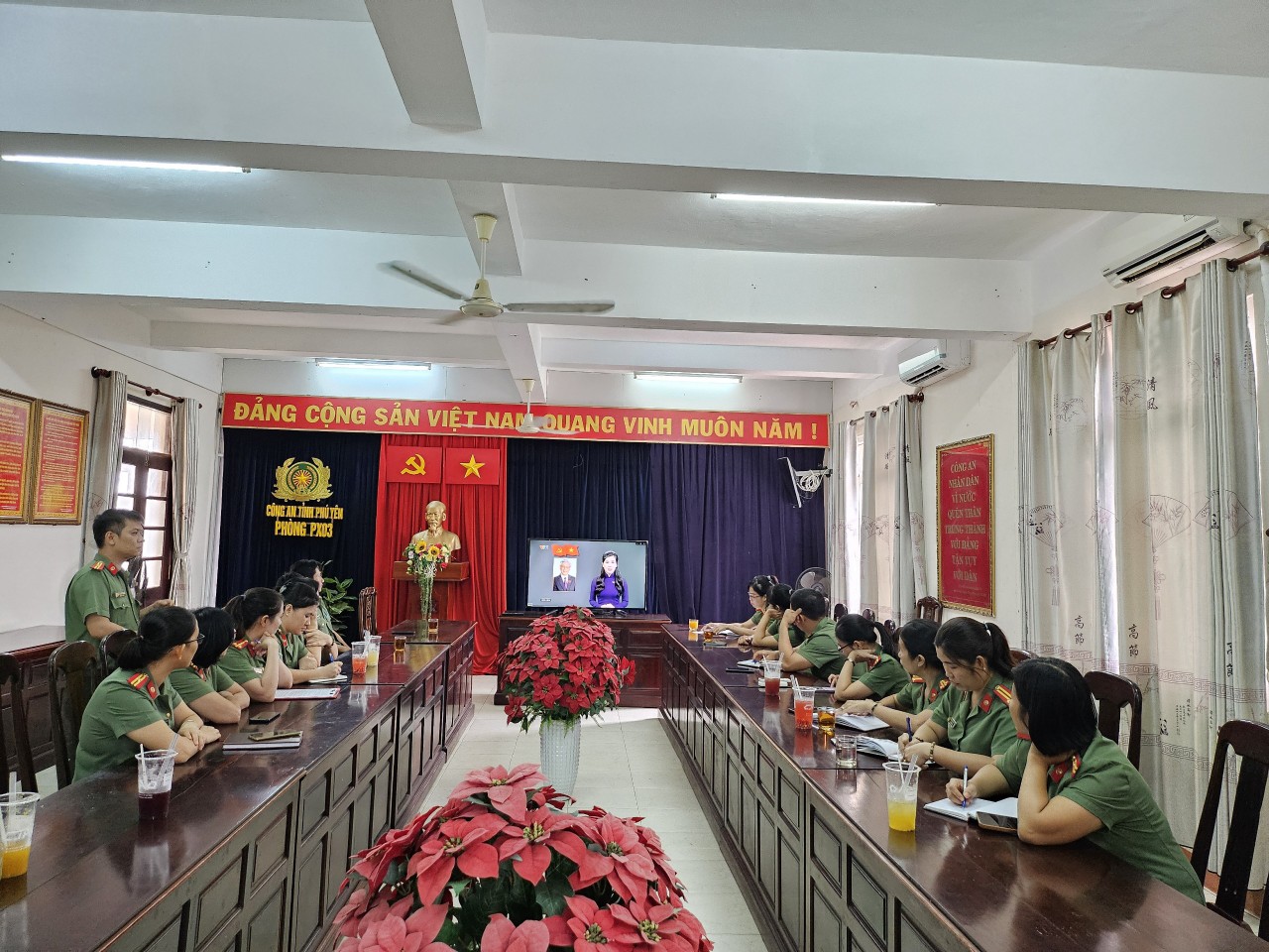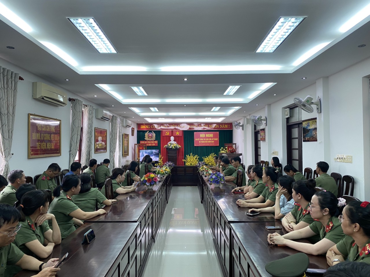 Trên cơ sở đó, trong ngày 26/7/2024, các chi đoàn, Hội cơ sở đã chủ động tổ chức và tham mưu cấp ủy, lãnh đạo các đơn vị, địa phương tổ chức các hoạt động sinh hoạt chính trị về học tập, làm theo các bài viết, các tác phẩm, các lời dạy của đồng chí Tổng Bí thư Nguyễn Phú Trọng đối với lực lượng Công an nhân dân, tổ chức xem phim tư liệu về cuộc đời, sự nghiệp cách mạng của đồng chí Tổng Bí thư trong đoàn viên, hội viên và CBCS. Từ đó, phát động trong đoàn viên, hội viên học tập, phấn đấu rèn luyện, trau dồi đạo đức cách mạng theo những lời dạy quý báu của đồng chí Tổng Bí thư đối với lực lượng Công an nhân dân: mỗi cán bộ, chiến sĩ Công an phải nỗ lực “Phụng sự Tổ quốc, phục vụ Nhân dân", "Còn Đảng thì còn mình", "Danh dự là điều thiêng liêng cao quý nhất”!