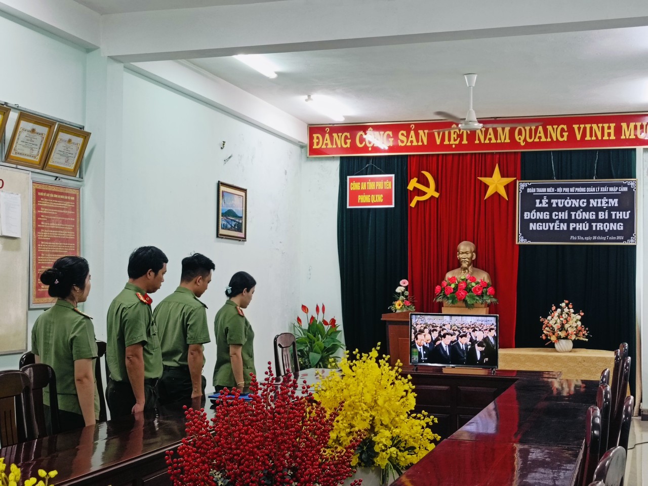 Đồng chí Tổng Bí thư Nguyễn Phú Trọng đã từ trần, để lại niềm tiếc thương vô hạn đối với toàn Đảng, toàn quân, toàn dân ta. Trên tinh thần biến đau thương thành hành động cách mạng, để bày tỏ lòng thành kính, biết ơn đối với công lao to lớn của đồng chí Tổng Bí thư đối với sự nghiệp cách mạng của Đảng, của dân tộc, tình cảm đối với lực lượng Công an nhân dân, qua đó giáo dục đạo lý “Uống nước nhớ nguồn” đối với đoàn viên, hội viên trong Công an Phú Yên; ngày 22/7/2024 vừa qua, Đoàn thanh niên, Hội phụ nữ Công an tỉnh đã phát động hoạt động tưởng niệm và học tập những lời dạy của đồng chí Tổng Bí thư Nguyễn Phú Trọng trong tất cả đoàn viên, hội viên phụ nữ Công an Phú Yên.