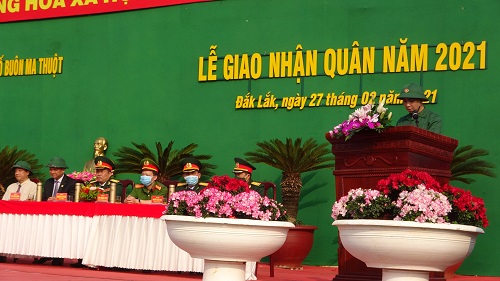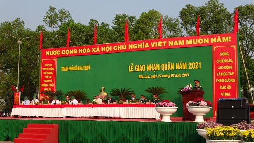 Sáng ngày 27/02/2021, tại Quảng trường 10-3, UBND TP. Buôn Ma Thuột long trọng tổ chức Lễ giao nhận quân năm 2021. Tham dự buổi lễ có đồng chí Bùi Văn Cường, Uỷ viên Trung ương Đảng, Bí thư Tỉnh uỷ Đắk Lắk; đồng chí Phạm Ngọc Nghị, Phó Bí thư Tỉnh uỷ, Chủ tịch UBND tỉnh Đắk Lắk, Đại tá Lê Mỹ Danh, Chỉ huy trưởng Bộ Chỉ huy Quân sự tỉnh; đồng chí Đại tá Phạm Tiến Triệu, Phó Giám đốc Công an tỉnh Đắk Lắk; đồng chí Từ Thái Giang, Bí thư Thành uỷ Buôn Ma Thuột, đồng chí Vũ Văn Hưng, Chủ tịch UBND TP. Buôn Ma Thuột và đại diện các đồng chí trong Thành uỷ, HĐND, UBND, UBMTTQ Việt Nam thành phố cùng đông đảo thân nhân, gia đình có con em nhập ngũ.