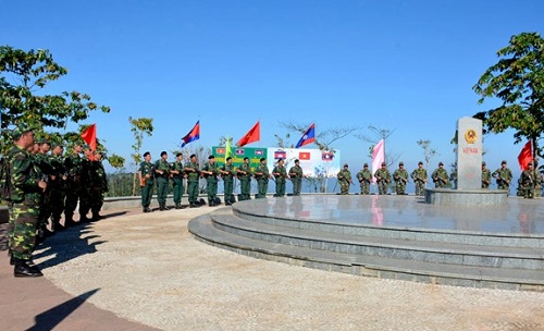 Linh thiêng Lễ Chào cột mốc của đại diện lực lượng bảo vệ biên giới ba nước Việt Nam - Lào - Campuchia
