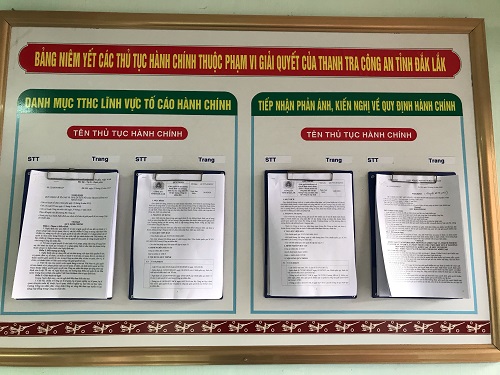 Gắn liền với chức năng, nhiệm vụ, đơn vị Thanh tra Công an tỉnh luôn xác định cải cách thủ tục hành chính là nội dung quan trọng, thường xuyên, cần phải được tổ chức thực hiện nghiêm túc theo hướng đơn giản, thuận lợi đảm bảo tính khách quan, công khai, minh bạch nhằm xóa bỏ các thủ tục rườm rà, gây khó khăn cho người dân. Để đạt được mục tiêu trên đơn vị đã xây dựng quy trình giải quyết thủ tục hành chính về khiếu nại, tố cáo theo Tiêu chuẩn quốc gia TCVN ISO 9001:2015 và Bộ quy trình giải quyết thủ tục hành chính về lĩnh vực Thanh tra trong nội bộ lực lượng Công an nhân dân thuộc Công an tỉnh Đắk Lắk. Bên cạnh đó, đơn vị đã đẩy mạnh công tác tuyên truyền, nâng cao nhận thức, trách nhiệm của lãnh đạo và cán bộ, chiến sĩ trong thực hiện nhiệm vụ cải cách thủ tục hành chính.