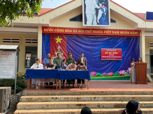 Để mô hình triển khai hiệu quả, cũng tại buổi lễ ra mắt, Công an xã Ea Blang và Ban Giám hiệu Trường Tiểu học & THCS Đinh Núp đã ký kết Giao ước phối hợp bảo đảm ANTT, phòng, chống bạo lực học đường tại nhà trường.
