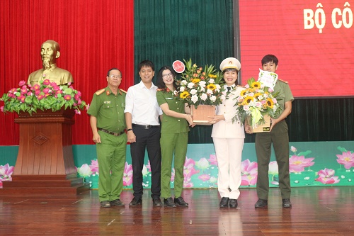 Tập thể Ban Giám đốc Công an tỉnh chúc mừng đ/c Đại tá Nguyễn Thị Xuân