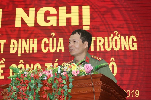 Đ/c Đại tá Vũ Hồng Văn - Giám đốc Công an tỉnh phát biểu đánh giá, ghi nhận những cống hiến của đ/c Đại tá Nguyễn Thị xuân trong thời gian công tác tại Công an tỉnh Đắk Lắk