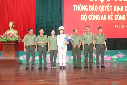 Sáng 18/11/2019, Công an tỉnh Đắk Lắk đã tổ chức thông báo Quyết định của Bộ trưởng Bộ Công an điều động đồng chí Đại tá Nguyễn Thị Xuân - Phó Giám đốc Công an tỉnh Đắk Lắk giữ chức vụ Phó Cục trưởng Cục Pháp chế và cải cách hành chính, tư pháp, Bộ Công an.