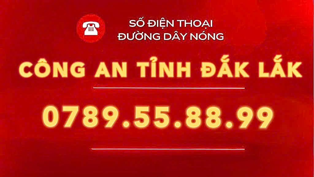 Từ ngày 06/8/2025, Công an tỉnh sử dụng số điện thoại 0789.55.88.99 làm số đường dây nóng Công an tỉnh Đắk Lắk (thay thế cho số điện thoại cũ 0262.3.70.4444) để tiếp nhận, xử lý tin phản ánh tiêu cực, tham nhũng của cán bộ chiến sĩ lực lượng Công an tỉnh Đắk Lắk.
