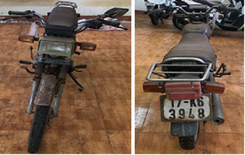 Quá trình điều tra, Cơ quan điều tra xác định Hà Văn Khoa đã sử dụng chiếc xe mô tô mang biển số 17K6-3948, nhãn hiệu Joyride của hãng SYM (số khung: RMNW CHCMN5H 002700, số máy: VVCLC 152 FMH00002700), không có giấy tờ chứng minh Khoa là chủ sở hữu để làm phương tiện hoạt động phạm tội.