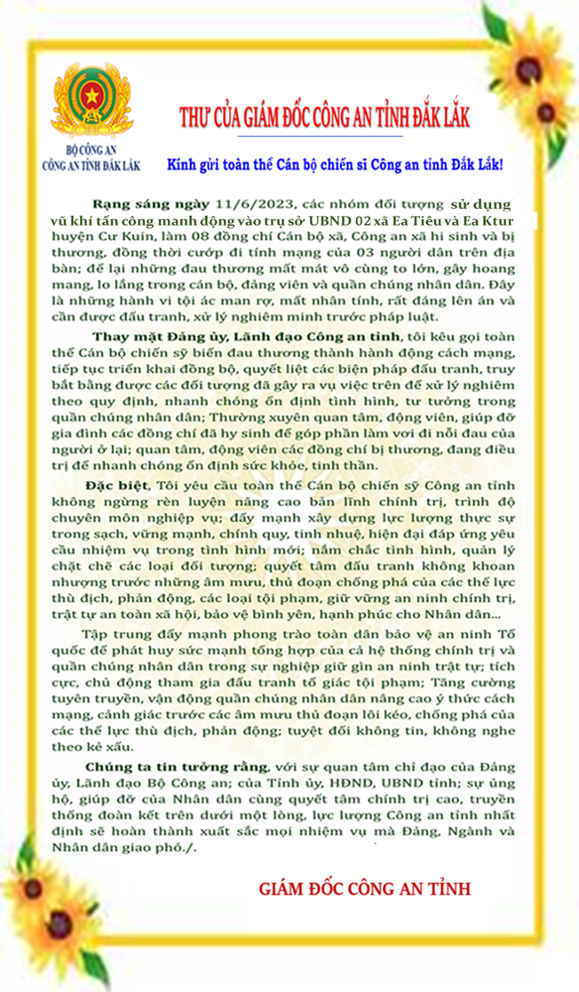 THƯ CỦA GIÁM ĐỐC CÔNG AN TỈNH ĐẮK LẮK