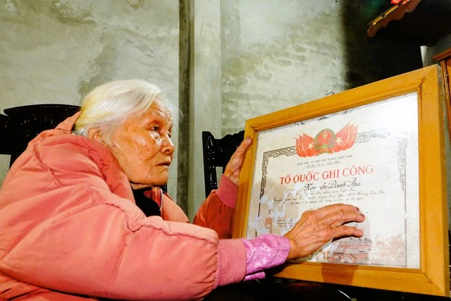 Mẹ Lê Thị Nguyên lau bằng Tổ quốc ghi công của con trai, liệt sĩ Nguyễn Danh Phú