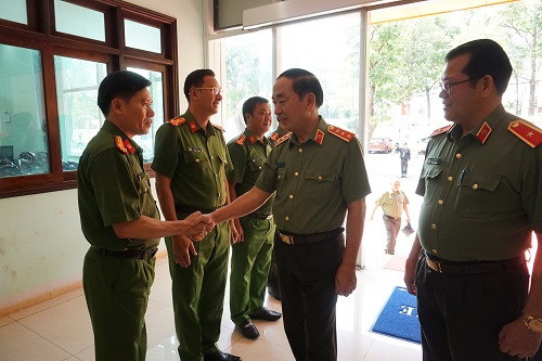 Tham gia cùng Đoàn công tác có đại diện lãnh đạo các cục nghiệp vụ Bộ Công an. Về phía địa phương có đồng chí Nguyễn Đình Trung, Uỷ viên Trung ương Đảng, Bí thư Tỉnh uỷ; Võ Văn Cảnh, Phó Chủ tịch UBND tỉnh cùng các đồng chí trong Ban Thường vụ Đảng uỷ Công an tỉnh, lãnh đạo các phòng nghiệp vụ, trưởng Công an các huyện, thị xã, thành phố.