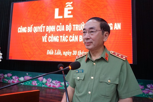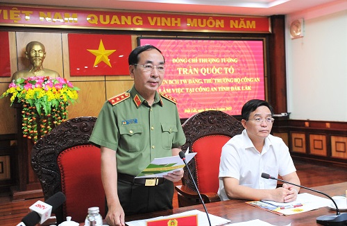Phát biểu chỉ đạo tại buổi làm việc, Thay mặt Đảng ủy Công an Trung ương, lãnh đạo Bộ Công an, Thứ trưởng Trần Quốc Tỏ ghi nhận và biểu dương những kết quả, thành tích của Công an tỉnh Đắk Lắk đã đạt được trong thời gian qua.