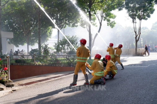 Dự và chỉ đạo buổi thực tập phương án có Ban Chỉ huy thực tập phương án, lãnh đạo Công an tỉnh Đắk Lắk, Đắk Nông, đại diện các sở, ban, ngành, cơ quan thông tấn, báo chí địa phương cùng với sự tham gia của hơn 500 người và nhiều phương tiện chữa cháy, cứu nạn, cứu hộ chuyên nghiệp.