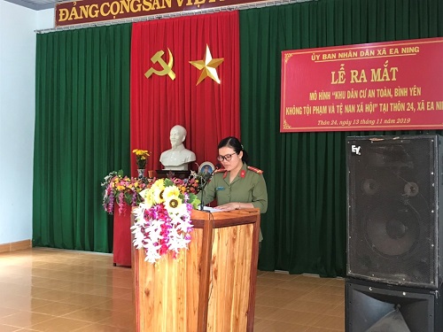 Đồng chí Thượng uý Lã Thị Thuý – Phó Trưởng Công an xã Ea Ning thông qua Kế hoạch xây dựng mô hình điểm “Khu dân cư an toàn, bình yên không tội phạm và tệ nạn xã hội”