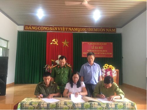 Các Tổ tự quản về an ninh, trật tự và các đoàn thể thôn 24 kí giao ước thi đua dưới sự chứng kiến của đồng chí Thượng tá Lê Trọng Liệu – Phó trưởng Công an huyện và đồng chí Trịnh Hoàng Sơn - Chủ tịch UBND xã Ea Ning