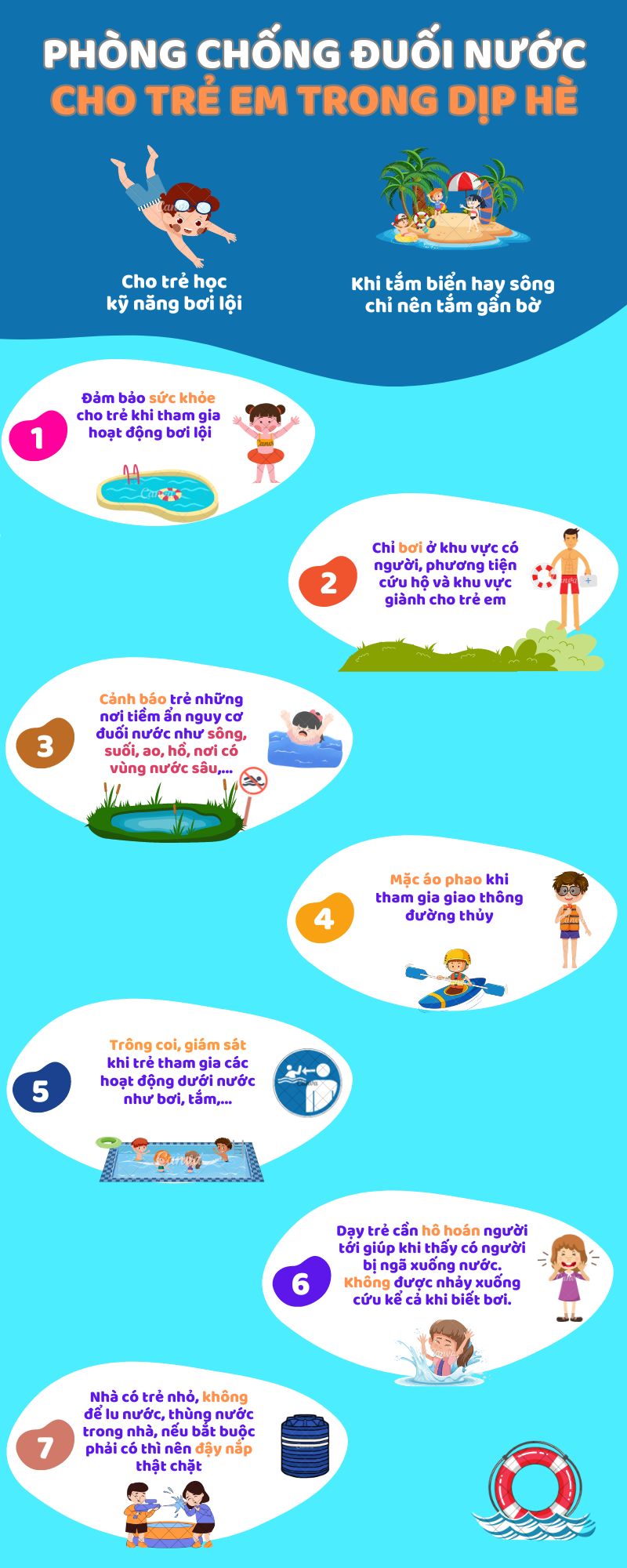Đuối nước ở trẻ em luôn là vấn đề "nóng" mỗi dịp hè. Theo các chuyên gia, đuối nước là nguyên nhân lớn nhất dẫn đến tai nạn thương tích cho trẻ em. Để phòng ngừa, ngăn chặn hiệu quả vấn nạn đuối nước ở trẻ em mỗi người dân, hộ gia đình cần chú ý thực hiện một số biện pháp sau: