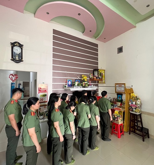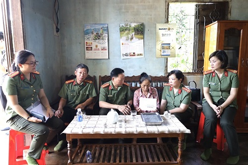 Tại nhà Thiếu tá Hoàng Trung, các thành viên trong đoàn vô cùng xúc động khi dâng hương tưởng nhớ liệt sỹ và lắng nghe những chia sẻ của mẹ anh, thời gian qua, Đồng chí Hoàng Trung bận thực hiện nhiệm vụ quan trọng do lãnh đạo giao và hỗ trợ người dân làm CCCD, Vneid nhưng vẫn hẹn với mẹ “Mẹ ơi, nhiệm vụ của con sắp xong rồi, vài hôm nữa con về sửa nhà cho mẹ nhé!”, hẹn mẹ vậy mà rồi đồng chí Trung lại không bao giờ trở về nữa. Trước đau thương, mất mát không thể kể xiết, mẹ anh phải cố gắng kiên cường để làm chỗ dựa cho các cháu và người con dâu đang bị bệnh, tiếp tục động viên các cháu học giỏi để nối nghiệp bố.