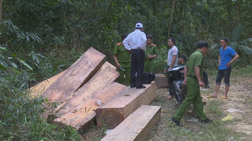 Gỗ bị các đối tượng khai thác trái phép được lực lượng Công an tỉnh phát hiện, xử lý