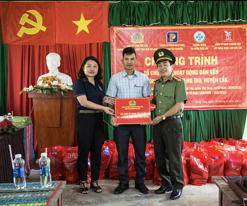 Ngày 16/8/2023, Phòng Xây dựng phong trào bảo vệ ANTQ đã phối hợp với các đơn vị và mạnh thường quân tổ chức nhiều hoạt động ý nghĩa tại Buôn Drung, xã Yang Tao, huyện Lắk chào mừng kỷ niệm 78 năm Cách mạng tháng Tám (19/8/1945 - 19/8/2023), Quốc khánh nước Cộng hòa xã hội chủ nghĩa Việt Nam (02/9/1945 - 02/9/2023) và 18 năm “Ngày hội toàn dân bảo vệ an ninh Tổ quốc; qua đó, xây dựng mối quan hệ gắn bó giữa lực lượng Công an và quần chúng nhân dân trong thực hiện mô hình dân vận khéo; đồng thời vận động nhân dân đoàn kết một lòng, tin tưởng vào chủ trương, chính sách của Đảng, tích cực tham gia phong trào toàn dân bảo vệ ANTQ, nâng cao ý thức phòng ngừa, tích cực phối hợp đấu tranh, tố giác tội phạm, góp phần xây dựng thế trận an ninh nhân dân vững chắc tại cơ sở.