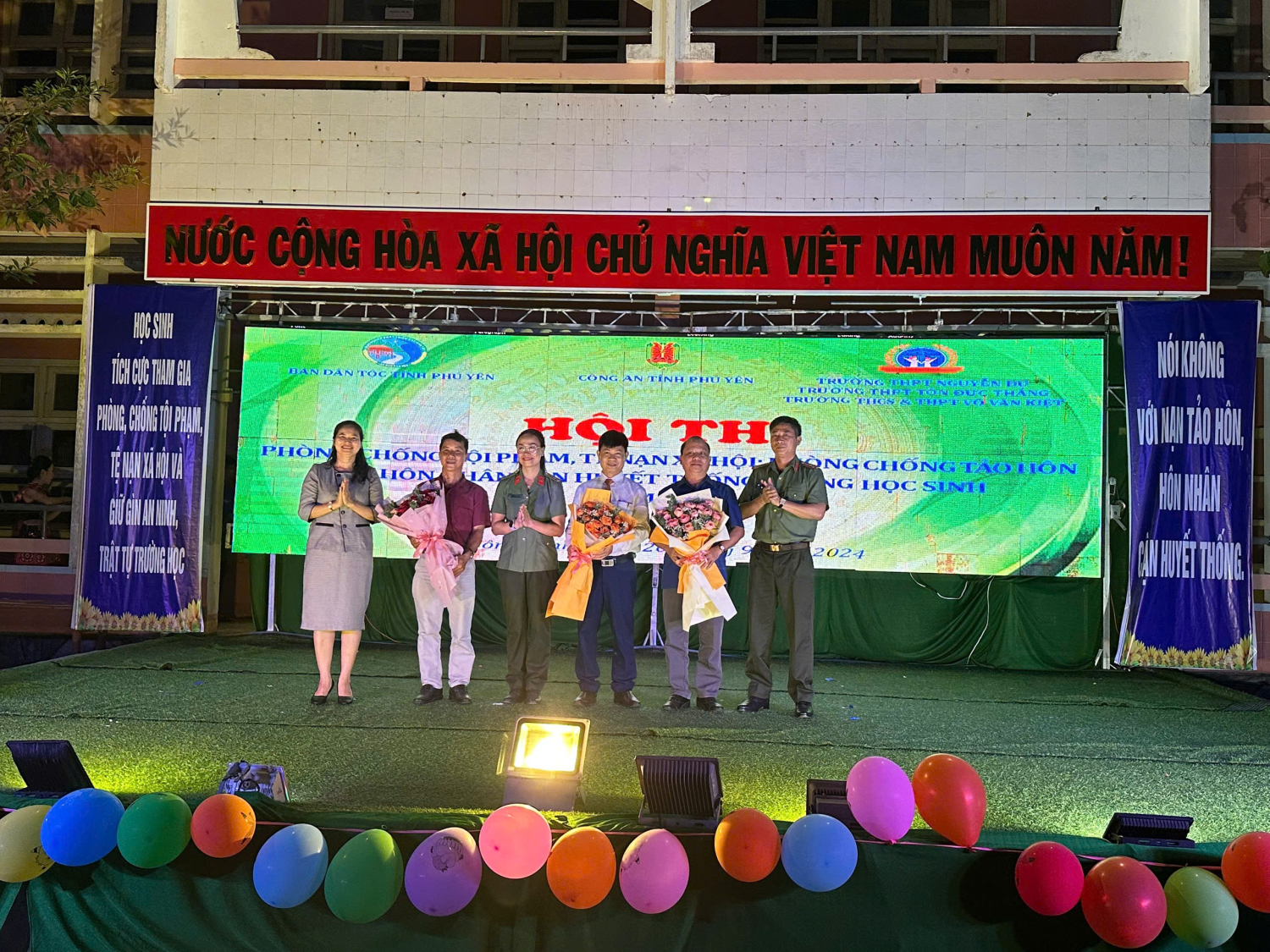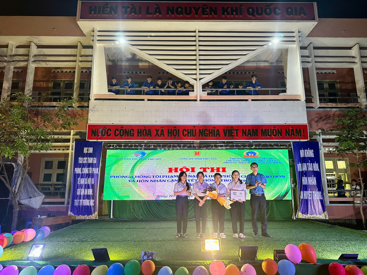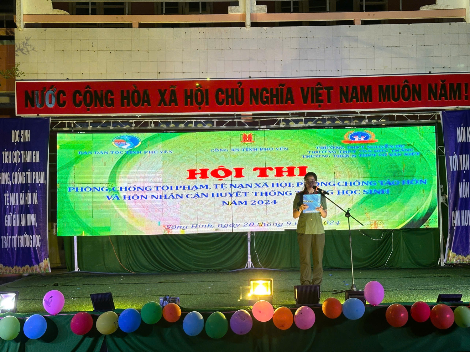 Thực hiện Kế hoạch số 190/KH-CAT-BDT ngày 03/6/2024 về tổ chức Hội thi truyền thông “Phòng chống tội phạm, tệ nạn xã hội; phòng chống nạn tảo hôn, hôn nhân cận huyết thống trong học sinh” năm 2024 tại Sông Hinh, tối ngày 20/9/2024, Công an tỉnh phối hợp với Ban Dân tộc tỉnh tổ chức Hội thi truyền thông tại Trường THPT Nguyễn Du.