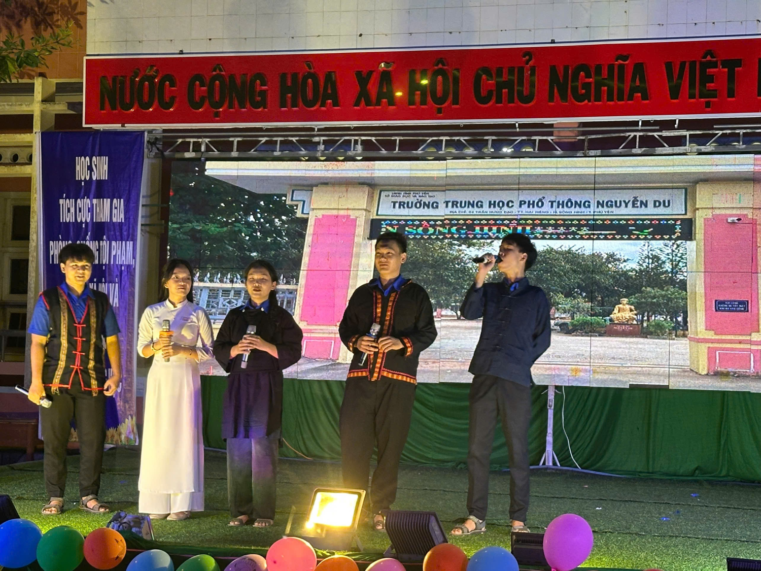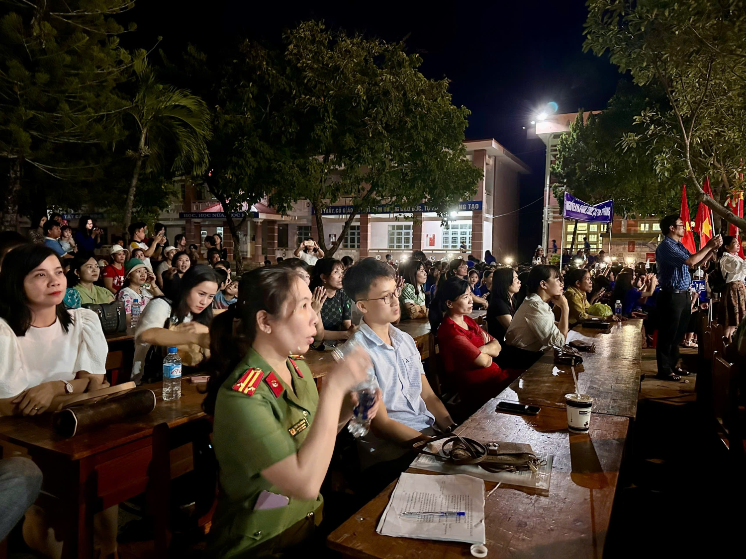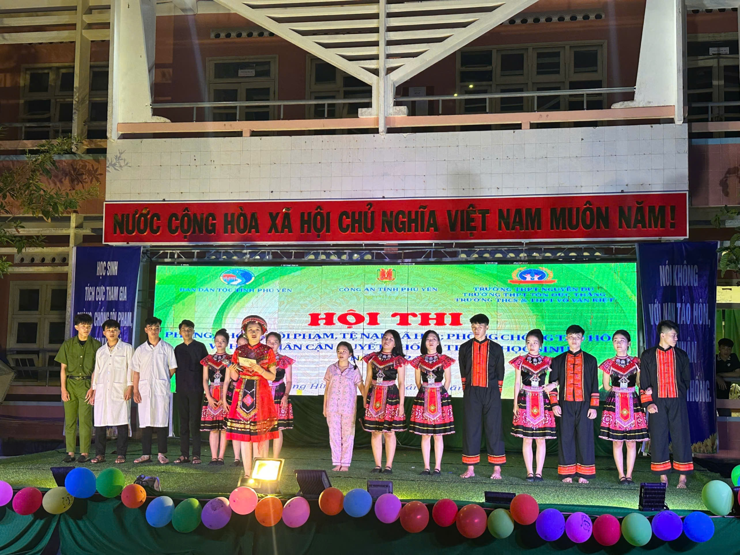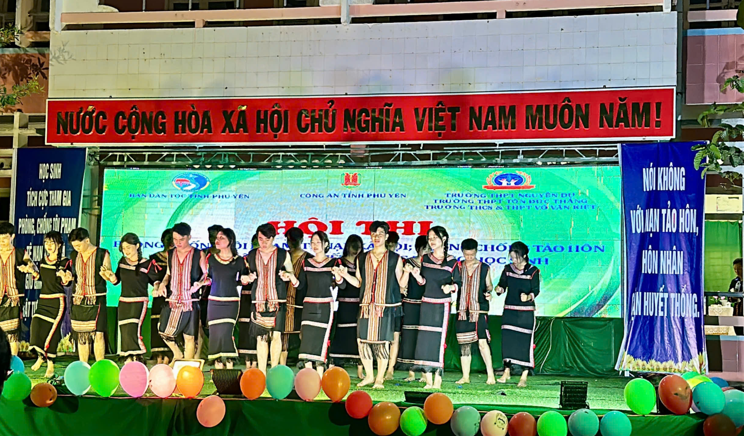 Thực hiện Kế hoạch số 190/KH-CAT-BDT ngày 03/6/2024 về tổ chức Hội thi truyền thông “Phòng chống tội phạm, tệ nạn xã hội; phòng chống nạn tảo hôn, hôn nhân cận huyết thống trong học sinh” năm 2024 tại Sông Hinh, tối ngày 20/9/2024, Công an tỉnh phối hợp với Ban Dân tộc tỉnh tổ chức Hội thi truyền thông tại Trường THPT Nguyễn Du.
