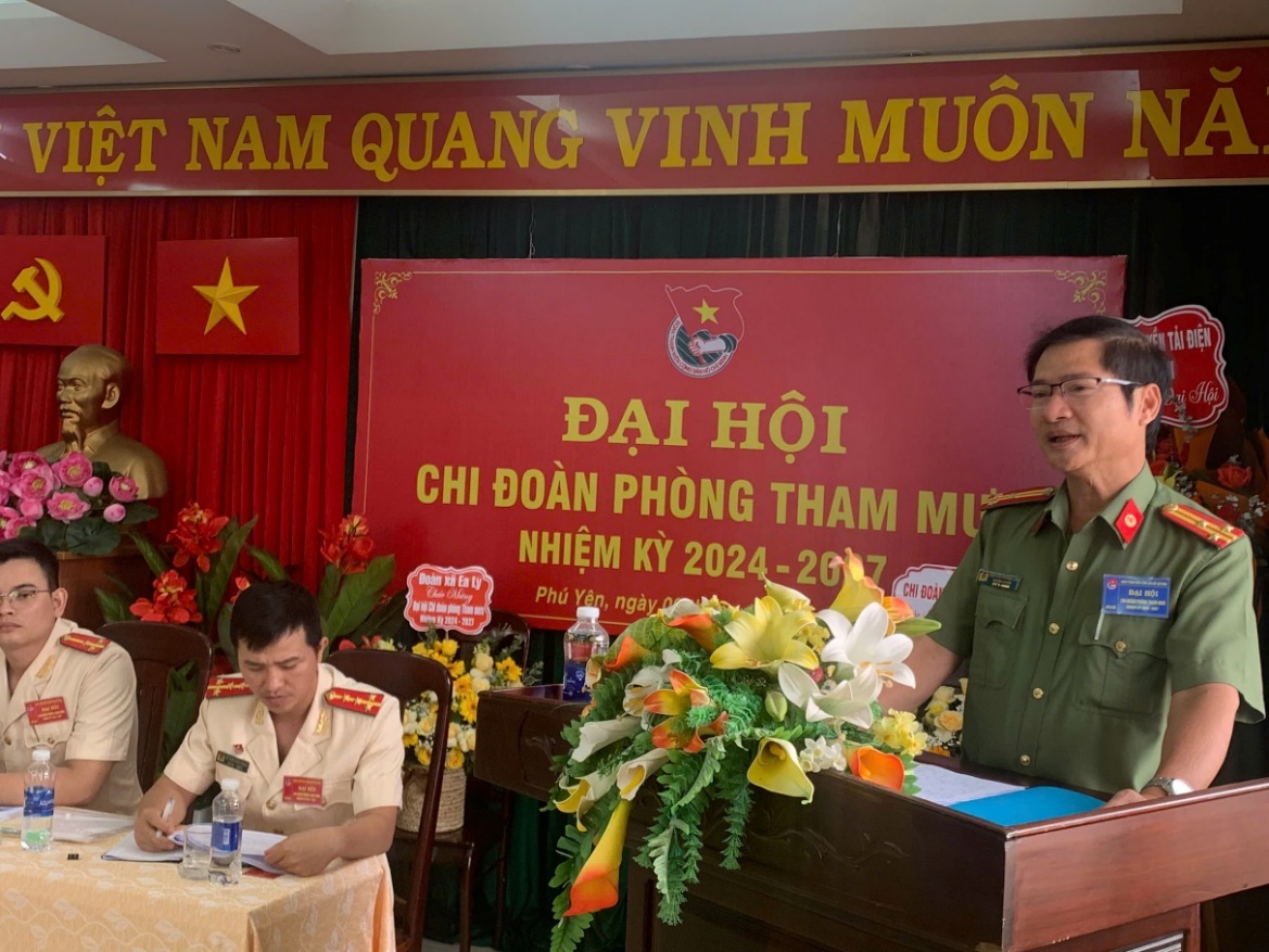 Tại Đại hội, đồng chí Thượng tá Nguyễn Phong Lưu thay mặt Đảng ủy, lãnh đạo Phòng Tham mưu và đồng chí Thiếu tá Đỗ Như Đương thay mặt Ban Thanh niên Công an tỉnh đã thể hiện sự quan tâm sâu sắc đối với Chi đoàn Phòng Tham mưu; đồng thời có ý kiến chỉ đạo quan trọng, định hướng hoạt động của Chi đoàn Phòng Tham mưu trong thời gian tới.