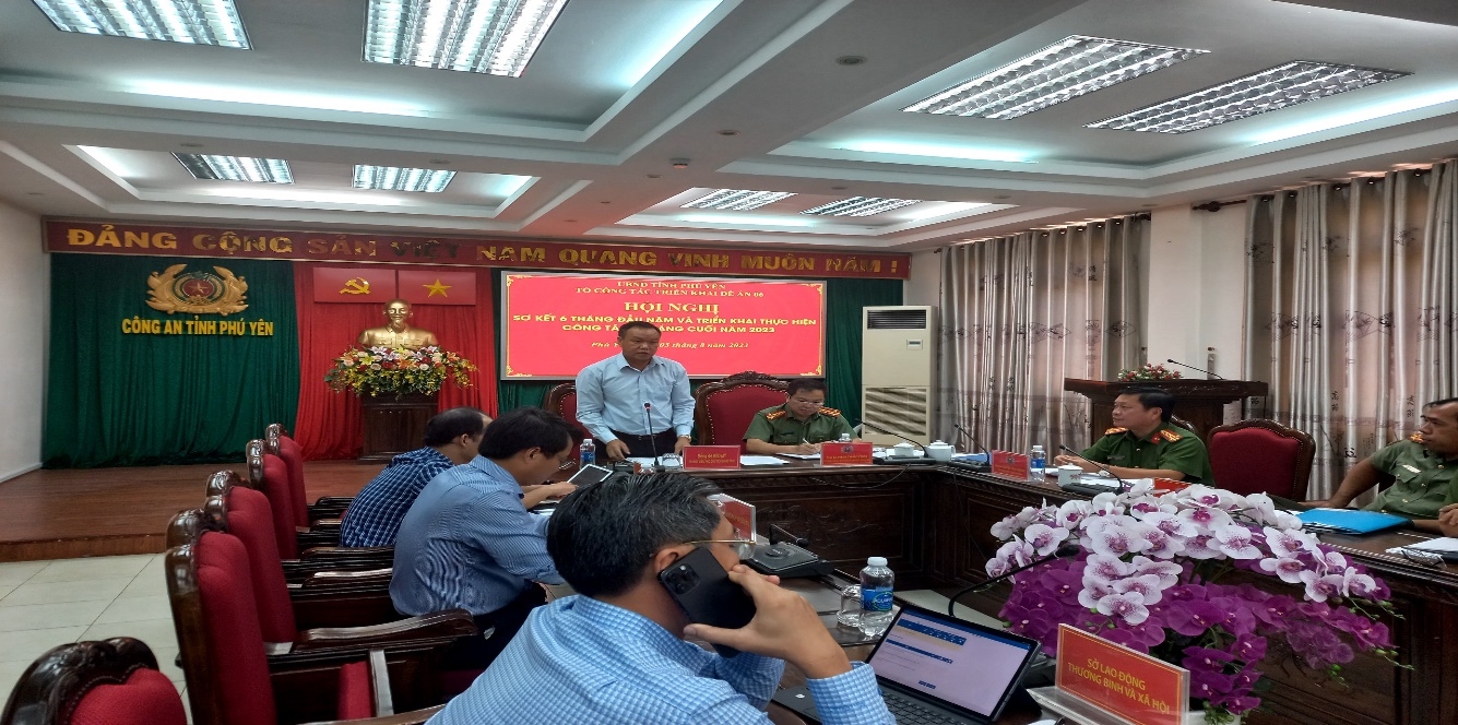 Sáng ngày 03/8/2023, Tại Hội trường Giao ban Công an tỉnh, Tổ công tác triển khai Đề án“Phát triển ứng dụng dữ liệu về dân cư, định danh và xác thực điện tử phục vụ chuyển đổi số quốc gia giai đoạn 2022-2025, tầm nhìn năm 2030” tỉnh Phú Yên (Tổ công tác triển khai Đề án 06 tỉnh) tổ chức Hội nghị Sơ kết 06 tháng đầu năm 2023 và triển khai nhiệm vụ 06 tháng cuối năm 2023. Đồng chí Đại tá Phan Thanh Tám - Giám đốc Công an tỉnh, Tổ phó thường trực Tổ công tác chủ trì hội nghị. Đến dự và chỉ đạo Hội nghị có đồng chí Đào Mỹ - Phó Chủ tịch UBND tỉnh; tham dự Hội nghị có thành viên Tổ công tác triển khai Đề án 06 của tỉnh, Tổ trưởng, Tổ phó thường trực Tổ công tác triển khai Đề án 06 các huyện, thị xã, thành phố và đại diện lãnh đạo một số sở, ban, ngành, Tổ giưps việc Đề án 06 tỉnh.