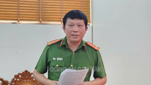 Đồng chí Thượng tá Phùng Minh Trí – Trưởng phòng CSQLHC về TTXH, Công an tỉnh Đắk Lắk báo cáo Kết quả kiểm đếm các nhiệm vụ Đề án 06 trên địa bàn tỉnh.
