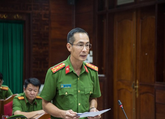 Đồng chí Thiếu tướng Lê Vinh Quy, Giám đốc Công an tỉnh, Tổ phó thường trực Tổ công tác điều hành nội dung thảo luận