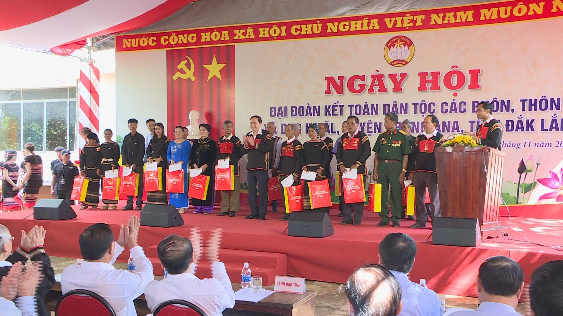 Cũng trong dịp này, Tổng Bí thư - Chủ tịch nước Nguyễn Phú Trọng và Ủy ban Trung ương Mặt trận Tổ quốc Việt Nam cùng UBND huyện Krông Ana đã trao tặng quà, ghi nhận, biểu dương nhiều tập thể, cá nhân, các già làng, trưởng buôn thôn, người có uy tín trong đồng bào các dân tộc 7 thôn, buôn của xã. Đây là những nhân tố tích cực lâu nay trong phong trào đại đoàn kết toàn dân, góp sức xây dựng xã Dur Kmăl anh hùng, ổn định, phát triển như hôm nay./.