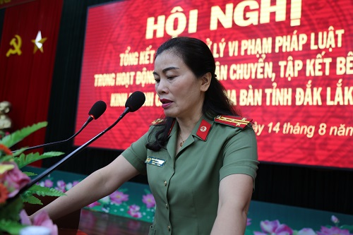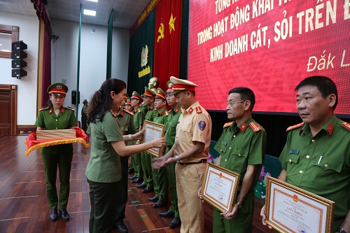 Phát biểu kết luận Hội nghị, đồng chí Đại tá Nguyễn Thị Xuân – Phó Giám đốc Công an tỉnh đã ghi nhận, biểu dương, đánh giá cao những kết quả đạt được của lực lượng Cảnh sát môi trường trên địa bàn tỉnh cùng một số đơn vị liên quan trong thực hiện đợt cao điểm xử lý vi phạm pháp luật đối với hoạt động khai thác, vận chuyển, tập kết bến bãi, kinh doanh cát, sỏi; đồng thời, chỉ đạo các đơn vị tiếp tục phối hợp thực hiện tốt nhiệm vụ trong thời gian tới. Nhân dịp này, đồng chí Phó Giám đốc Công an tỉnh đã trao Giấy khen của Giám đốc Công an tỉnh Đắk Lắk cho 03 tập thể, 15 cá nhân đã có thành tích tiêu biểu xuất sắc trong đợt cao điểm./.