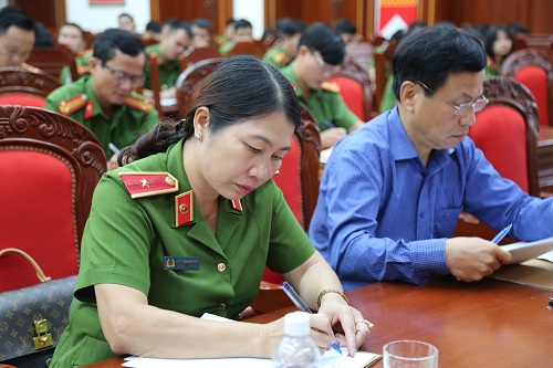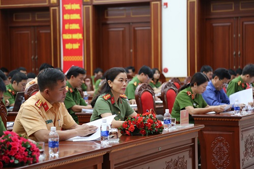 Đồng chí Đại tá Nguyễn Thị Xuân - Phó Giám đốc Công an tỉnh chủ trì Hội nghị.