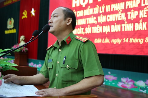 Sáng 14/8, Công an tỉnh Đắk Lắk tổ chức Hội nghị tổng kết đợt cao điểm xử lý vi phạm trong hoạt động khai thác, vận chuyển, tập kết bến bãi, kinh doanh cát, sỏi trên địa bàn tỉnh Đắk Lắk. Tham dự Hội nghị có đồng chí Thiếu tướng Nhữ Thị Minh Nguyệt - Phó Cục trưởng Cục Cảnh sát phòng, chống tội phạm môi trường, Bộ Công an và đại diện lãnh đạo các đơn vị thuộc Công an tỉnh, Công an huyện, thị xã, thành phố cùng CBCS lực lượng Cảnh sát môi trường trên địa bàn tỉnh. Đồng chí Đại tá Nguyễn Thị Xuân - Phó Giám đốc Công an tỉnh chủ trì Hội nghị.