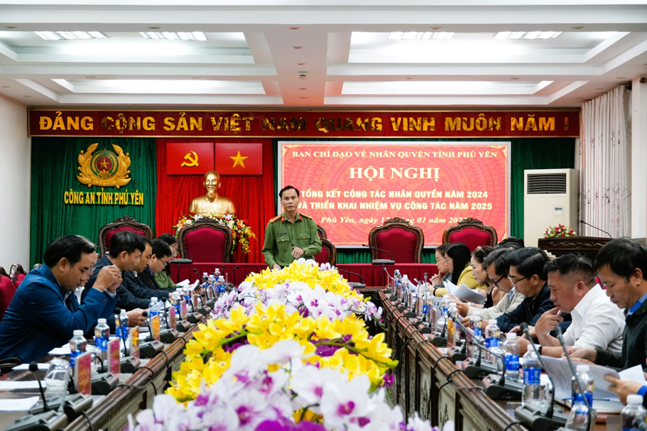 Sáng ngày 17/01/2025, tại Công an tỉnh Phú Yên, Ban Chỉ đạo (BCĐ) về Nhân quyền tỉnh Phú Yên tổ chức Hội nghị tổng kết công tác bảo vệ, đấu tranh về nhân quyền năm 2024 và triển khai nhiệm vụ công tác năm 2025. Đại tá Nguyễn Khỏe - Phó Giám đốc Công an tỉnh, Phó Trưởng Ban Thường trực BCĐ chủ trì hội nghị. Cùng tham dự, có lãnh đạo các sở, ban, ngành, đại diện lãnh đạo UBND các huyện, thị xã, thành phố, thành viên BCĐ và Văn phòng Thường trực BCĐ về Nhân quyền tỉnh.