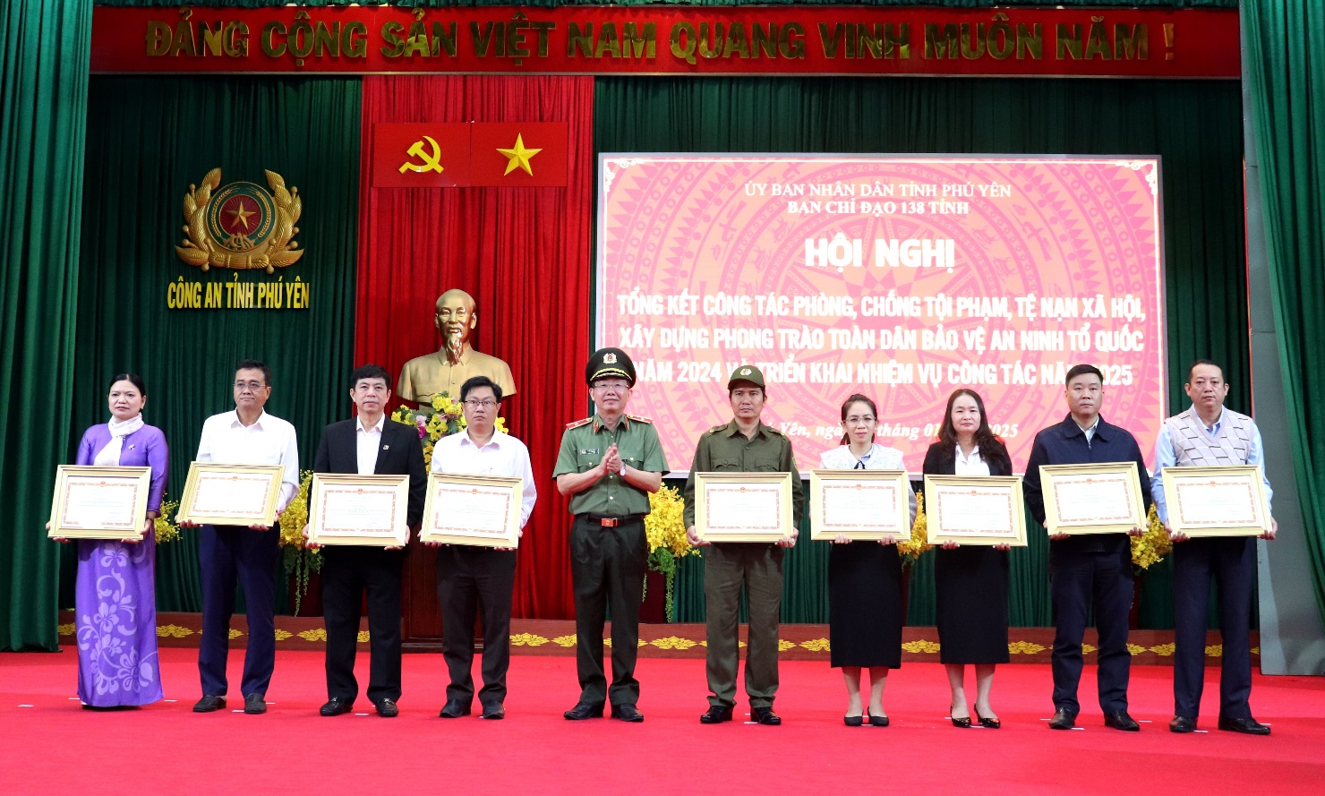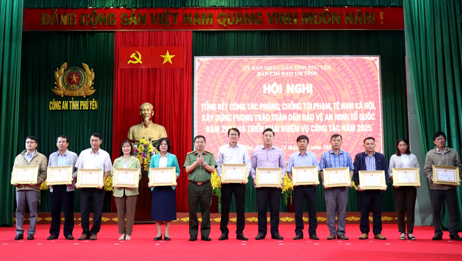 Sáng 14/01/2025, Ban Chỉ đạo phòng, chống tội phạm, tệ nạn xã hội và xây dựng phong trào toàn dân bảo vệ ANTQ tỉnh Phú Yên (viết tắt là Ban Chỉ đạo 138 tỉnh) tổ chức Hội nghị tổng kết công tác phòng, chống tội phạm, tệ nạn xã hội và xây dựng phong trào toàn dân bảo vệ an ninh tổ quốc (TDBVANTQ) năm 2024, triển khai nhiệm vụ năm 2025.