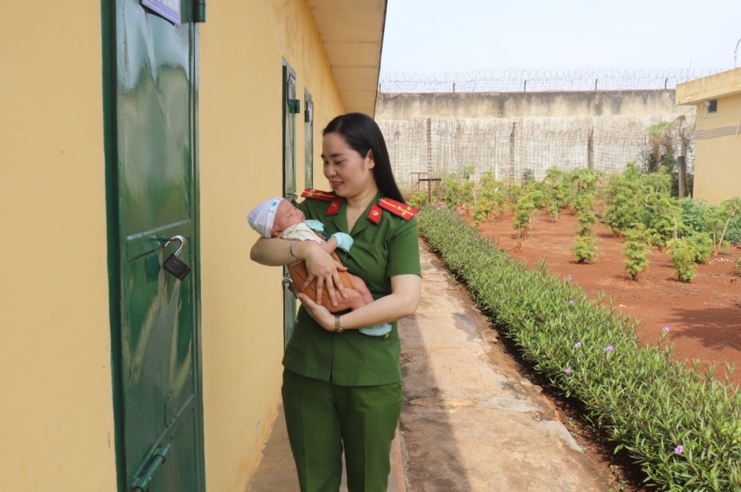 Cán bộ quản giáo tận tâm chăm sóc những đứa trẻ sinh ra trong trại hàng ngày