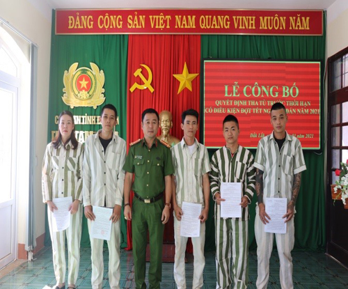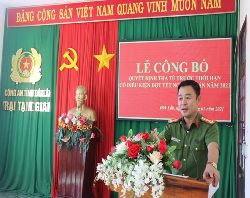 Ngày 22/01/2021, Đồng chí Thượng tá Huỳnh Thanh Bình – Giám thị Trại tạm giam Công an tỉnh Đắk Lắk đã trao các quyết định của Tòa án nhân dân tỉnh Đắk Lắk về việc tha tù trước thời hạn cho 05 phạm nhân đang thi hành án tại Trại tạm giam Công an tỉnh Đắk Lắk.