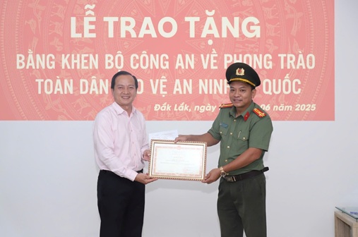 Vừa qua, ngày 02/6/2025, thừa ủy quyền của Bộ trưởng Bộ Công an, Phòng An ninh chính trị nội bộ Công an tỉnh Đắk Lắk đã phối hợp với Bệnh viện Mắt Tây Nguyên tổ chức trao tặng Bằng khen của Bộ trưởng Bộ Công an cho tập thể cán bộ, công nhân viên bệnh viện vì đã có nhiều đóng góp trong sự nghiệp bảo vệ an ninh Tổ quốc trên địa bàn tỉnh Đắk Lắk. Đây là một hình thức khen thưởng của Bộ Công an cho tập thể có đóng góp đặc biệt quan trọng đối với công tác bảo đảm an ninh, trật tự và xây dựng phong trào toàn dân bảo vệ an ninh Tổ quốc.