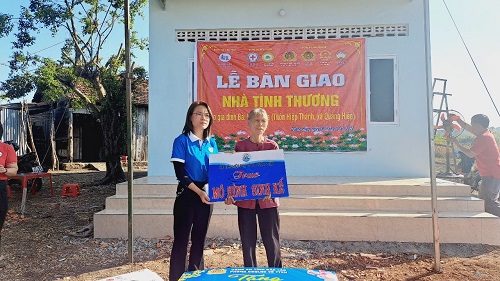 Trao tặng nhà tình thương cho gia đình bà Vũ Thị Na ở thôn Hiệp Thành, xã Quảng Hiệp, huyện Cư M’gar