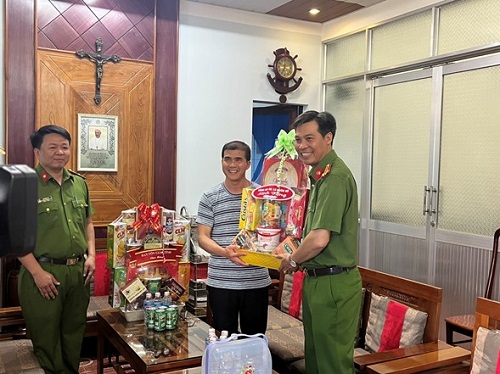 Lãnh đạo Công an thị xã thăm, tặng quà Linh mục Đỗ Minh Hiển – Quản xứ Giáo xứ Vinh Quang
