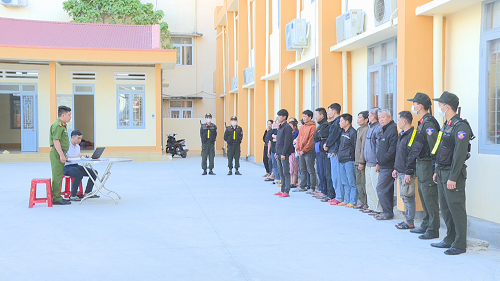Hình ảnh các đối tượng cùng tang vật tại cơ quan Công an