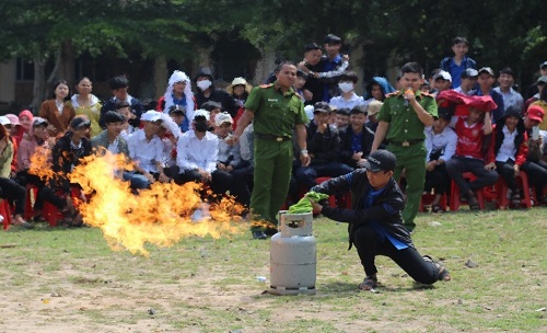 Cán bộ, chiến sĩ Công an huyện Ea Kar cũng như Đội Cảnh sát PCCC và CNCH số 3, nhiệt tình hướng dẫn và thực hành thực tế