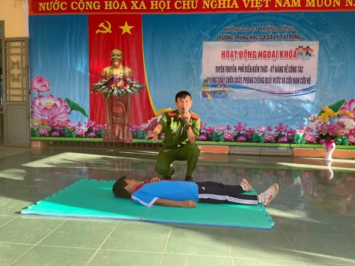 Trong thời gian vừa qua Đội Cảnh sát PCCC và CNCH - Công an huyện Krông Bông phối hợp công an các xã và các trường học trên địa bàn tổ chức tuyên truyền phổ biến kiến thức pháp luật về công tác PCCC và CNCH cho Ban giám hiệu, cán bộ, giáo viên và tuyên truyền phòng chống đuối nước cho học sinh.