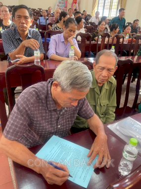 Người dân thảo luận về các nội dung tuyên truyền và ký cam kết